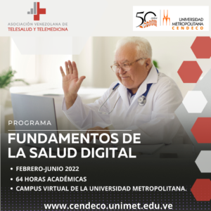 El Programa Fundamentos de Salud Digital, preparado por la Asociación Venezolana de Telesalud y Telemedicina y el Centro de Extensión, Desarrollo Ejecutivo y Consultoría Organizacional de la Universidad Metropolitana (@cendeco), le proporcionará las herramientas necesarias en estos nuevos tiempos.